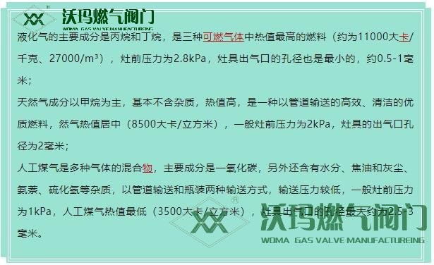 總結:再次強調:液化氣灶、天然氣灶與煤氣灶是不能通用的。以上就是玉環沃瑪小編整理的有關《液化氣灶、天然氣灶、煤氣灶通用嗎?有什么區別?》的大致內容,如有錯漏之處強朋友們及時指出小編會在第一時間改。想要了解更多燃氣灶相關信息,請收藏本站及時關注本站更新。玉環沃瑪燃氣閥官方網址:www.phrb.cn